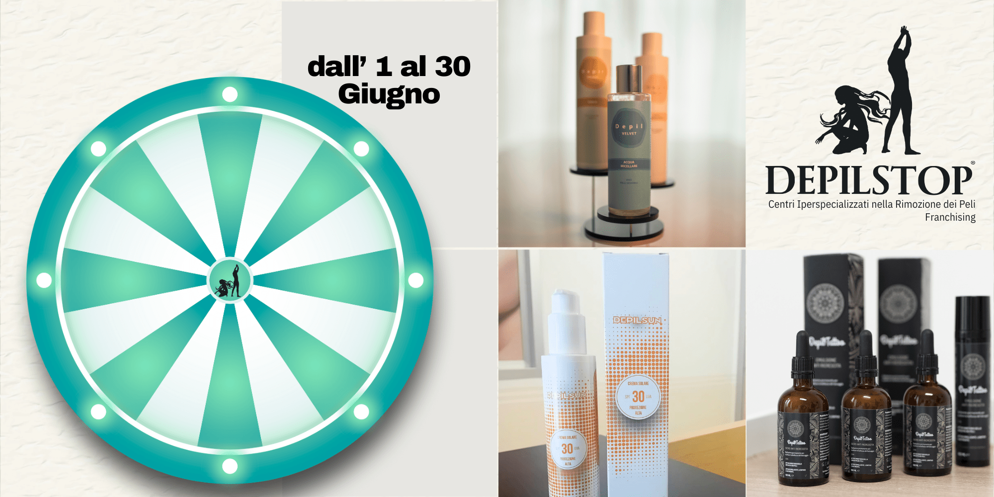 Acquistando due prodotti a marchio Depilstop nel mese di Giugno, potrai partecipare all’ estrazione online di un bonus extra dal valore minimo di 5 a un massimo di 100 Depil Coin. I punti che vincerai verranno accreditati sulla tua webapp, all’interno del tuo programma fedeltà Depilstop, aiutandoti a raggiungere il premio finale che desideri